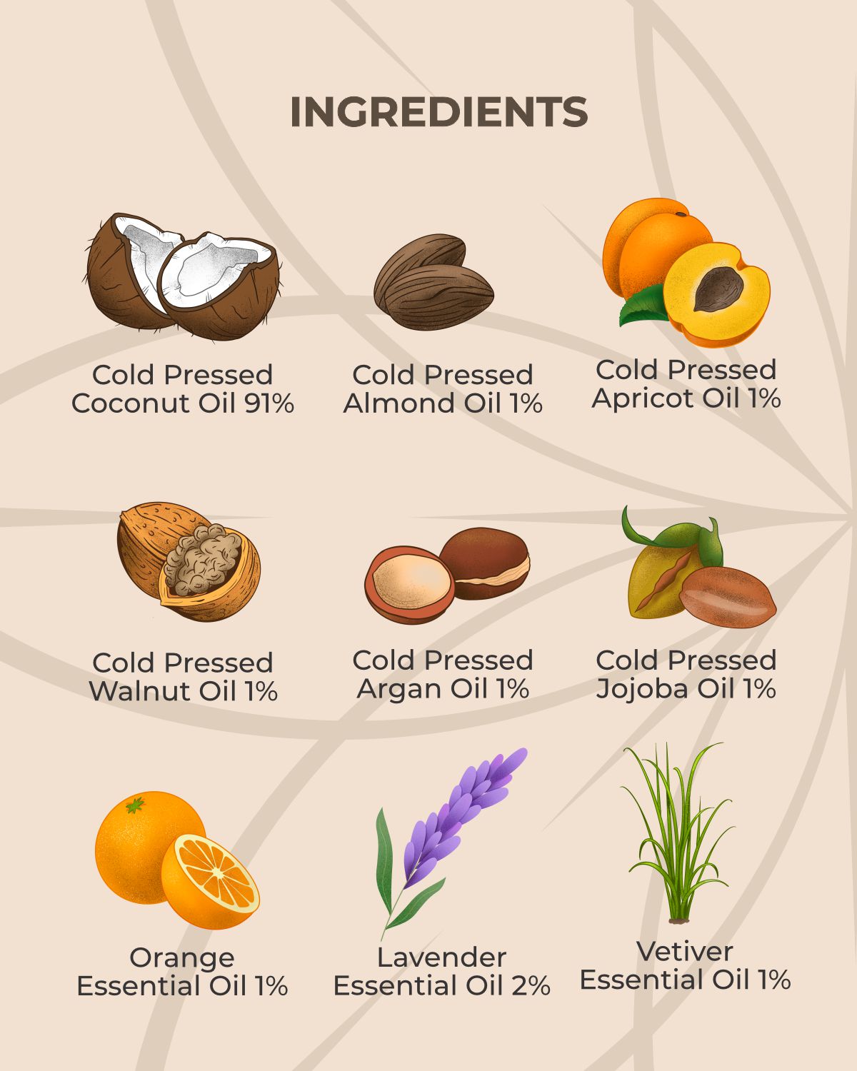Cold-pressed, nut-based body oil blended with naturally distilled fruit essential oils to lock in moisture and fragrance during your bath.
