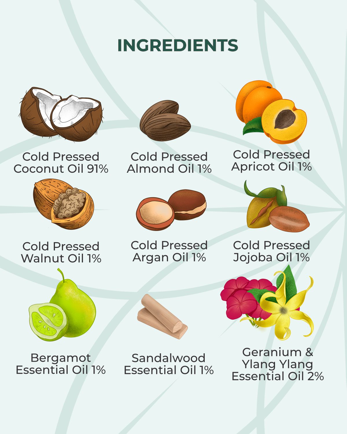 Cold-pressed, nut-based body oil blended with naturally distilled fruit essential oils to lock in moisture and fragrance during your bath.